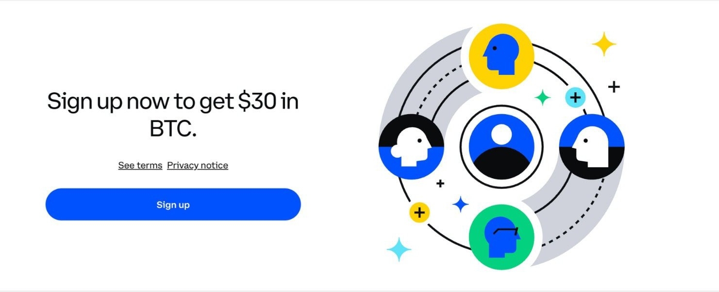 Earn $30 worth of Bitcoin when you create a coinbase account and buy $20 of any other crypto there!